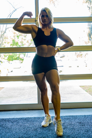 - Shorts: Mid-rise waist, designed to be form-fitting.